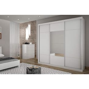 Guarda Roupa Casal 3 Portas De Correr (1 C/ Espelho) E 4 Gavetas Arezzo/medelim Cumaru/fendi 25 - Novo Horizonte - Branco