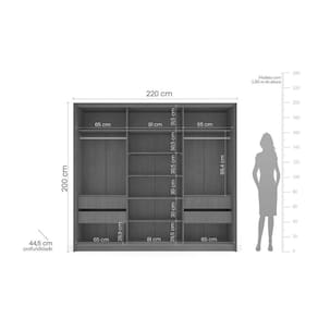 Dimensões(Cm): Comprimento(Profundidade): 44,5cm x Largura: 220cm x Altura: 200,4cm