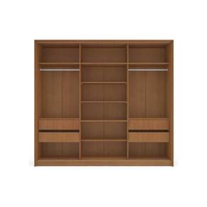 Tipo de Porta do Guarda-Roupa - Portas de Correr Material das Portas - Portas em MDF/MDP Quantidade de Portas - 3 Portas de Correr Material das Gavetas - Gavetas em MDF/MDP Tipo de Corrediça - c/ Corrediças Telescópicas Quantidade de Gavetas - 4 Gavetas Material das Prateleiras - Prateleiras em MDF/ MDP Quantidade de Prateleiras - 5