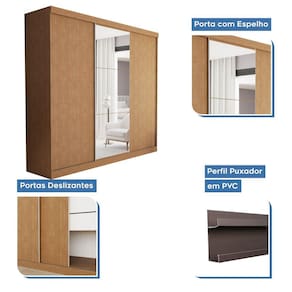 O Guarda-Roupa Barcelona vai manter o seu quarto arrumado e com uma decoração moderna. Confeccionado com matérias de qualidade, ele possui 3 portas de correr e 4 gavetas com corrediças metálicas, garantindo assim a resistência ao abrir e fechar. Suas prateleiras são espaçosas e vão deixar as suas roupas sempre à mão. Demais não é? Leva. Acabamento da Prateleira: Pintura Escala de Brilho da Prateleira: Brilhante Possui Cabideiros: Sim Acabamento da Gaveta: Pintura Escala de Brilho da Gaveta: Brilhante Possui Organizador de Gaveta: Não Acabamento da Porta: Pintura Escala de Brilho da Porta: Fosco Material do Puxador da Porta: Alumínio Altura do Espelho: 66,5 cm Ambiente Principal: Quarto codigo_ean: 7909903496350 Complexidade da Montagem: Alta: deve ser montado por um montador especializado Cor: Carvalho Cor do Produto: Carvalho Escala de Brilho: Fosco Espessura do Espelho: 3 mm Formato do Espelho: Retangular Gaveta com Chave: Não Itens Inclusos: 1 Guarda Roupa, Kit Ferragens e Manual de Montagem Largura do Espelho: 66,9 cm Linha ou Coleção: Barcelona Manual de Montagem e Instalação: https://product-hub-prd.madeiramadeira.com.br/881356/documents/168d26cb-63bc-4903-9558-988a443aa384obarcelona3pts350134350135.pdf Material da Gaveta: MDP Material da Porta: MDP Material da Prateleira: MDP Material Principal: MDP modular: Não Necessita Montagem: Sim Origem do Produto: Nacional Peso: 142 kg Peso Máximo por Gaveta: 10 kg Peso Máximo por Prateleira: 5 kg Possui Calceiros: Não Possui Espaço para Vestidos Longos: Não Possui Espelho: Sim Possui Espelho Interno: Não Possui Ganchos: Não Possui Pés: Não Possui Portas: Sim Possui Prateleiras: Sim Possui Sapateira: Não Produto Montado: Sim Quantidade de Espelho: 03 Espelhos com Tamanhos Iguais Quantidade de Gavetas: 04 Gavetas Quantidade de Prateleiras: 03 Prateleiras Recomendações de Uso, Manutenção e Limpeza: Limpar com flanela limpa e seca. Não usar produtos abrasivos. Sistema de Montagem: Parafuso e minifix Suporta Até (kg): 80 kg Tipo de Corrediça da Gaveta: Metálica Simples Tipo de Dobradiça/Corrediça da Porta: Alumínio Tipo de Fixação do Espelho: Parafusos Tipo de Gaveta: Interna Tipo de Guarda-Roupa: Casal Tipo de Puxador da Gaveta: Embutido Tipo de Puxador da Porta: Externo Ean: 7909903496350