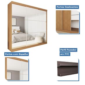 O Guarda-Roupa Rennes vai manter o seu quarto arrumado e com uma decoração moderna. Confeccionado com matérias de qualidade, ele possui 3 portas de correr e 4 gavetas com corrediças metálicas, garantindo assim a resistência ao abrir e fechar. Suas prateleiras são espaçosas e vão deixar as suas roupas sempre à mão. Demais não é? Leva. Acabamento da Prateleira: Pintura Escala de Brilho da Prateleira: Brilhante Possui Cabideiros: Sim Acabamento da Gaveta: Pintura Escala de Brilho da Gaveta: Brilhante Possui Organizador de Gaveta: Não Acabamento da Porta: Pintura Escala de Brilho da Porta: Fosco Material do Puxador da Porta: Alumínio Altura do Espelho: 66,5 cm Ambiente Principal: Quarto codigo_ean: 7909903496367 Complexidade da Montagem: Alta: deve ser montado por um montador especializado Cor: Carvalho Cor do Produto: Carvalho Escala de Brilho: Fosco Espessura do Espelho: 3 mm Formato do Espelho: Retangular Gaveta com Chave: Não Itens Inclusos: 1 Guarda Roupa, Kit Ferragens e Manual de Montagem Largura do Espelho: 66,9 cm Linha ou Coleção: Rennes Manual de Montagem e Instalação: https://product-hub-prd.madeiramadeira.com.br/881357/documents/26974d80-3803-474c-901d-06ac76683650eirorennes3pts350137350138.pdf Material da Gaveta: MDP Material da Porta: MDP Material da Prateleira: MDP Material Principal: MDP modular: Não Necessita Montagem: Sim Origem do Produto: Nacional Peso: 161 kg Peso Máximo por Gaveta: 5 kg Peso Máximo por Prateleira: 10 kg Possui Calceiros: Não Possui Espaço para Vestidos Longos: Não Possui Espelho: Sim Possui Espelho Interno: Não Possui Ganchos: Não Possui Pés: Não Possui Portas: Sim Possui Prateleiras: Sim Possui Sapateira: Não Produto Montado: Sim Quantidade de Espelho: 09 Espelhos com Tamanhos Iguais Quantidade de Gavetas: 04 Gavetas Quantidade de Prateleiras: 03 Prateleiras Recomendações de Uso, Manutenção e Limpeza: Limpar com flanela limpa e seca. Não usar produtos abrasivos. Sistema de Montagem: Parafuso e minifix Suporta Até (kg): 80 kg Tipo de Corrediça da Gaveta: Metálica Simples Tipo de Dobradiça/Corrediça da Porta: Alumínio Tipo de Fixação do Espelho: Parafusos Tipo de Gaveta: Interna Tipo de Guarda-Roupa: Casal Tipo de Puxador da Gaveta: Embutido Tipo de Puxador da Porta: Externo Ean: 7909903496367