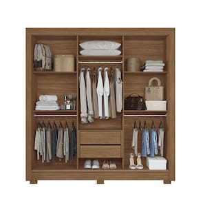 Caracteristicas Estrutura: MDP 12mm Acabamento: Pintura UV Quantidade e Tipo de Portas: 3 de correr Tipo de Dobradicas/Trilhos: Dobradicas Metalicas Simples Quantidade de Gavetas: 2 Tipo de Corredicas: Telescopicas Tipo de Puxadores: MDF revestido Quantidade e Tipo de Cabideiros: 3 em Aluminio Quantidade de Prateleiras: 5 Suporte ate: 8kg na prateleira e 3kg por gaveta. Manutencao: Nao limpar com alcool ou qualquer outro produto quimico, utilize somente pano seco ou levemente umedecido. Sistema de Montagem: Cavilhas, Parafusos e Minifix Itens Inclusos: 1 Guarda-Roupa, Kit ferragens e Manual de montagem Espelho: -530x510mm- 3 unidades Garantia de Fabrica: 3 meses