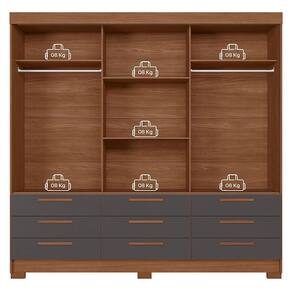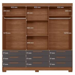 Guarda Roupa Casal 3 portas de correr 9 gavetas Morretes com espelho Jatobá Grafite - Santos Andirá