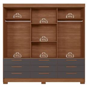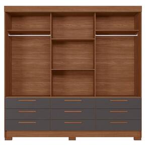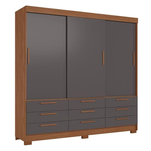 Guarda Roupa Casal 3 portas de correr 9 gavetas Morretes Jatobá Grafite - Santos Andirá