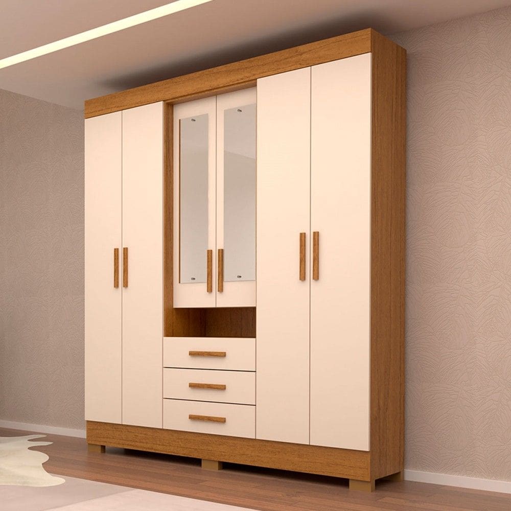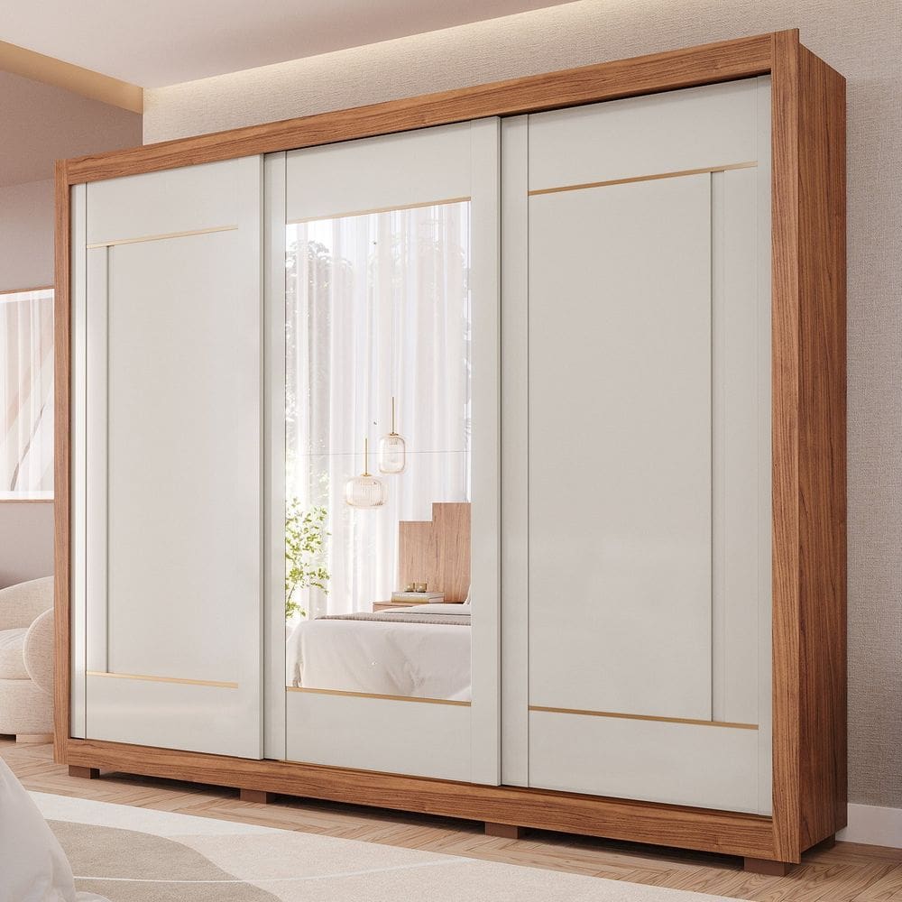 guarda roupa casal 3 portas de correr com espelho 100 mdf cristal cinamomooff white