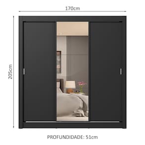 Características principais: Conta com portas de correr que deslizam suavemente, graças aos trilhos superiores e inferiores em alumínio. Isso garante um funcionamento tranquilo e sem esforço. Uma das portas conta com espelhos, que são úteis no dia a dia e deixam o móvel ainda mais elegante.