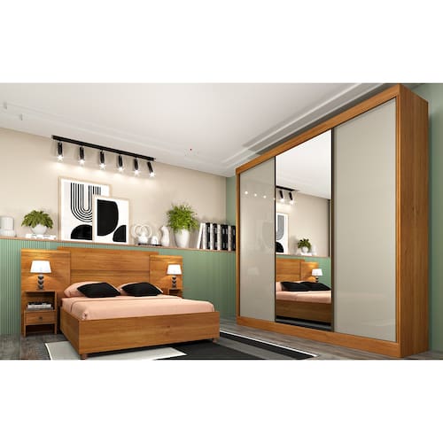 Para você que quer renovar o seu quarto, o Guarda Roupa Dacar é perfeito! Um móvel elegante e amplo ideal para organizar e guardar os seus pertences. Confeccionado em materiais de ótima qualidade o que garante maior resistência ao produto e o design moderno proporciona uma decoração sofisticada e harmoniosa. Gostou? Aproveite essa oportunidade!Dimensões:Altura: 234 cmLargura: 240 cmProfundidade: 55 cmDetalhes TécnicosProduto em MDPCabideiros em alumínioCorrediças telescópicas Perfil puxador em alumínio nas portas Trilhos inferior em alumínio Trilho superior em PVC Roldanas com rolamento Puxador interno nas gavetas em PVC Costas inteiriçasInformações ComplementaresRecomendações de Uso: Manutenção e Limpeza Limpar com flanela limpa e seca. Não usar produtos abrasivos.Os objetos que ambientam as fotos não acompanham o produto.Verifique as dimensões do produto e certifique-se que o percurso que ele fará até o local de uso permite sua passagem. Nós não nos responsabilizamos pelo transporte de itensa) que não caibam em elevadores;b) que devam ser levados acima de três lances de escada ou que não caibam na passagem de escadas;c) que precisem ser içados ou desmontados.Favor verificar se os pés estão dentro do forro inferior do produto.Fique atento, nossas cores podem sofrer alterações dependendo do seu monitor.Política sujeita a alterações de acordo com regras de lojas parceiras