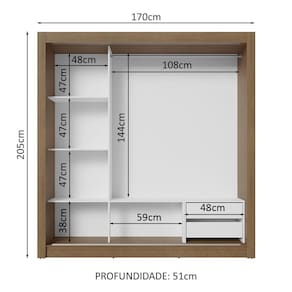 Medidas totais: 205 cm de altura x 170 cm de largura x 51 cm de profundidade.
