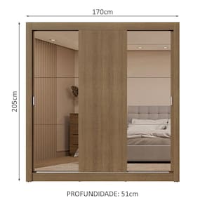 Características principais: Conta com portas de correr que deslizam suavemente, graças aos trilhos superiores e inferiores em alumínio. Isso garante um funcionamento tranquilo e sem esforço. Duas portas contam com espelhos, que são úteis no dia a dia e deixam o móvel ainda mais elegante.