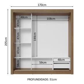 Medidas totais: 205 cm de altura x 170 cm de largura x 51 cm de profundidade.