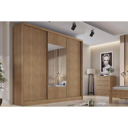 Guarda Roupa Casal 3 Portas de Correr e 4 Gavetas c/ Espelho Arezzo/Medelim Cumaru - Horizonte