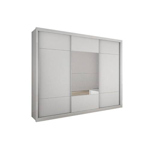 Guarda Roupa Casal 3 Portas de Correr e 4 Gavetas c/ Espelho Arezzo Plus Branco - Novo Horizonte