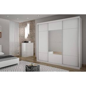 Guarda Roupa Casal 3 Portas De Correr E 4 Gavetas C/ Espelho Arezzo Plus Branco - Novo Horizonte
