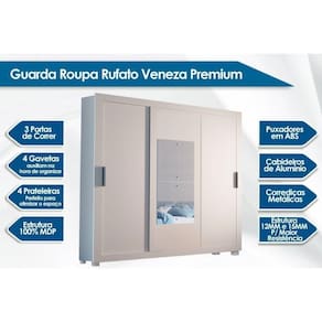 Guarda Roupa Casal 3 Portas de Correr (1 c/ Espelho) e 4 Gavetas c/ Pés Veneza Premium Naturalle/Ripado 3D - Rufato Marca: Rufato