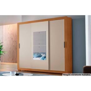 Guarda Roupa Casal 3 Portas De Correr E 4 Gavetas C/ Espelho E Pés Veneza Premium Naturale/off White - Rufato