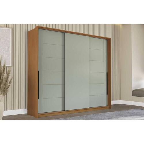Guarda Roupa Casal 3 Portas de Correr e 4 Gavetas Lisboa Freijo/Verde - Politorno
