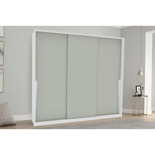 Guarda Roupa Casal 3 Portas de Correr e 4 Gavetas Porto Branco/Verde - Politorno