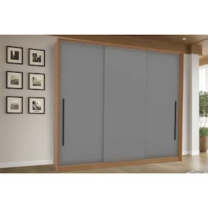 Guarda Roupa Casal 3 Portas de Correr e 4 Gavetas Valência Freijo/Cinza - Politorno