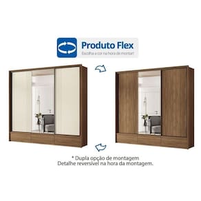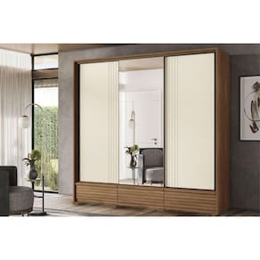 Material dos Cabideiros - Cabideira Metálico Tipo de Porta do Guarda-Roupa - Portas de Correr Material das Portas - Portas em MDF Diferenciais das Portas - Portas Ripadas - Porta c/ Espelho Quantidade de Portas - 3 Portas de Correr Quantidade de Portas com Espelho - 1 Porta com Espelho Tipo de Espelho - Espelho Externo Quantidade de Espelhos - 3 Espelhos Tipo de Corrediça - c/ Corrediças Telescópicas Quantidade de Gavetas - 5 Material de Estrutura Fundo Gaveta - Em HDF Tipo dos Pés - ABS/PVC Quantidade de Pés - 8 pés