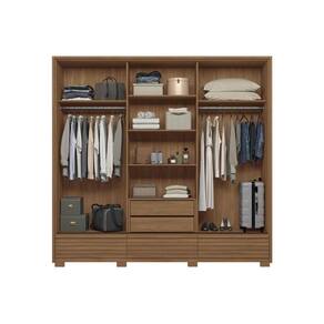 Guarda Roupa Casal 3 Portas De Correr E 5 Gavetas C/ Pés Democrata Jatoba Ou Jatoba Areia - Flex - Santos Andirá