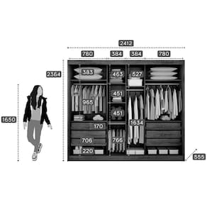 Dimensões(Cm): Comprimento(Profundidade): 241cm x Largura: 56cm x Altura: 236cm