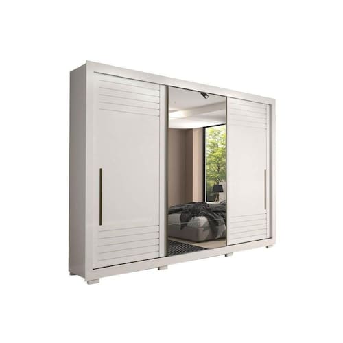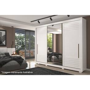 Guarda Roupa Casal 3 Portas de Correr e 6 Gavetas c/ Espelho e Pés Vitória Branco - Panan