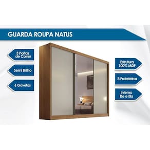 Guarda Roupa Casal 3 Portas de Correr e 6 Gavetas c/ Espelho Natus Freijo Cumaru - Novo Horizonte