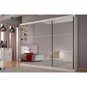 Guarda Roupa Casal 3 Portas de Correr e 6 Gavetas c/ Espelho Passion Plus Branco - Novo Horizonte