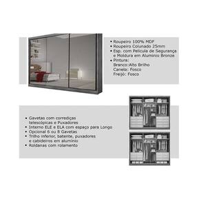 Guarda Roupa Casal 3 Portas de Correr e 6 Gavetas c/ Espelho Passion Plus Freijo Cumaru - Novo Horizonte