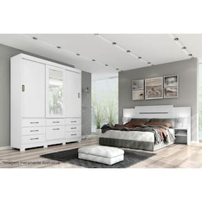 CARACTERÍSTICAS DE MÓVEIS Tipo de Estrutura do Móvel - 100% MDF Tipo de Pintura - UV Tipo de Acabamento da Pintura - Semi Brilho Tipo de puxador - Metálico Quantidade de Prateleiras - 4 Prateleiras Quantidade de Gavetas - 7 Diferenciais da Gaveta - c/ Corrediças Telescópicas Quantidade de Portas - 3 Portas de Correr Garantia - 3 meses