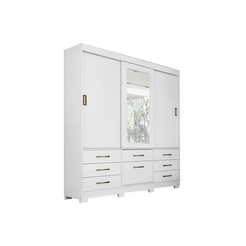 Guarda Roupa Casal 3 Portas De Correr E 7 Gavetas C/ Espelho Luiza Branco - Panan