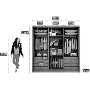 Dimensões(Cm): Comnto(Profundidade): 55,5cm x Largura: 208,2cm x Altura: 236,4cm