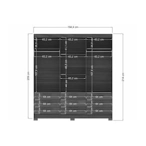 Dimensões(Cm): Comprimento(Profundidade): 46cm x Largura: 194,4cm x Altura: 214cm