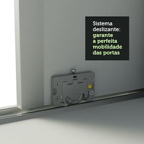 O acabamento da estrutura externa e a parte interna são brancas. As portas possuem pintura preta em um lado e branca no outro. Assim, você pode fazer a escolha no momento da montagem. O processo é feito em Pintura Poliéster de alta resistência que confere maior proteção e durabilidade ao móvel.
