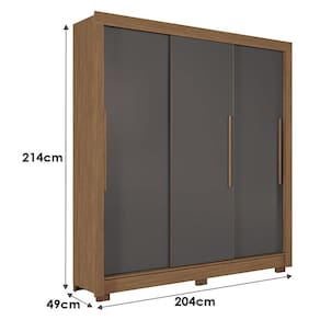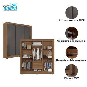 Guarda Roupa Casal 3 portas de correr Maringá Jatobá Grafite - Santos Andirá