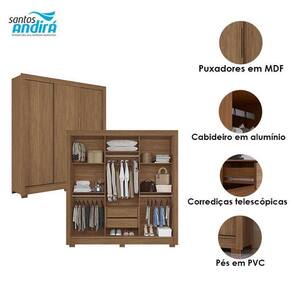 Guarda Roupa Casal 3 portas de correr Maringá Jatobá - Santos Andirá