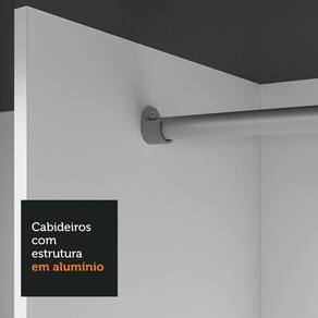 Ótimo espaço interno e organização: Ideal para um casal, possui diversos nichos e duas gavetas que facilitam a organização de roupas, calçados e acessórios. O tubo cabideiro metálico é resistente e perfeito para pendurar roupas longas.