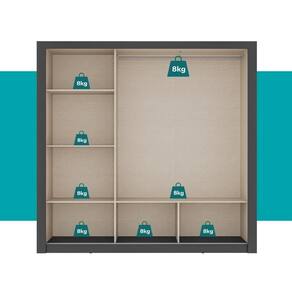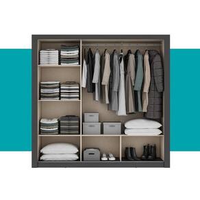 Seu interior é dividido em três partes bem distribuídas, garantindo um armazenamento eficiente para roupas, acessórios e itens pessoais.