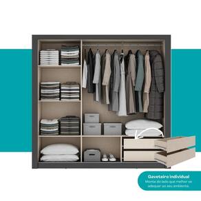 Com 3 portas de correr, sendo a central com esplho, divididas em 3 partes internase 2 gavetas, este produto oferece acesso fácil e organização eficiente.