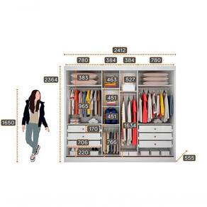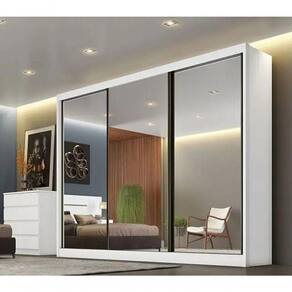 Guarda Roupa Casal Diamond 3 Portas Espelhadas 6 Gavetas Novo HorizonteMedidas do Produto Montado:Altura: 236 cmLargura: 241 cmProfundidade: 56 cm.- Produzido em mdf. - Reforço no espelho, que é revestido com película de segurança, reduzindo o risco de quebra;- Corrediças telescópicas nas gavetas que permitem um deslize amplo e suave no movimento de puxar;- Possui cabideiro e calceiro em alumínio, e o trilho inferior possui roldanas para rolamento;- Espaço reservado para roupas longas;- Prateleiras espaçosas para organização de camisas, calças, acessórios e até o jogo de cama;- 8 Gavetas;- 8 Prateleiras;- 4 Cabideiros;Recomendações de uso, manutenção e limpeza: Pano levemente umedecido com sabão neutro- Não responsabilizamos pela montagem e instalação dos produtos.A responsabilidade da montagem é do consumidor.- Os Objetos que ambientam as imagens não acompanham o produto.- Pode haver alguma diferença de tonalidade entre a foto e o produto.