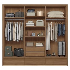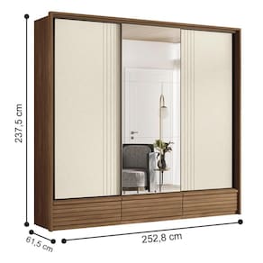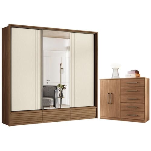Com portas ripadas em MDF e um grande espelho central, ele proporciona embelezamento sofisticado ao quarto. Possui gavetas e prateleiras amplas perfeitas para guardar e organizar suas roupas, cobertores ou sapatos.