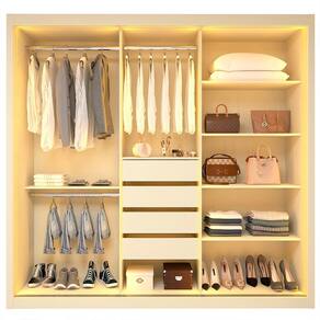 O Roupeiro Royale 03P é a união perfeita entre sofisticação, funcionalidade e acabamento premium. Produzido em 100% MDF, oferece alta durabilidade e um visual elegante para o quarto. Conta com 4 gavetas amplas equipadas com corrediças telescópicas, que garantem abertura suave e maior resistência no uso diário. Possui 2 tubos cabideiros, ideais para a organização prática de roupas.