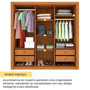 Conta com 3 prateleiras bem distribuídas, ideais para manter roupas e acessórios organizados. Os 2 cabideiros em alumínio acrescentam leveza, resistência e um toque moderno ao produto.