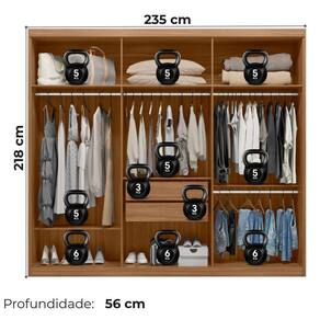 O Guarda-Roupa Casal Dalila é a escolha ideal para quem busca praticidade sem abrir mão do design moderno. Estrutura 100% em MDF (15/ 12 mm) e acabamento em pintura UV. Composto por portas de correr equipadas com trilhos metálicos (central com espelhos), prateleiras internas, cabideiro interno (alumínio), gavetas com corrediças telescópicas e puxadores em ABS. As portas possuem montagem flex que possibilita harmonizar o móvel com a decoração do ambiente. Este produto será entregue em 05 volumes.