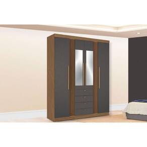 Material do Calceiro - Calceiro Metálico Material dos Cabideiros - Cabideira Metálico Tipo de Porta do Guarda-Roupa - Portas de Bater Material das Portas - Portas em MDP Quantidade de Portas - 4 Portas de Abrir Quantidade de Portas com Espelho - 2 Portas com Espelho Tipo de Espelho - Espelho Externo Tipo de Corrediça - c/ Corrediças Telescópicas Quantidade de Gavetas - 4 Gavetas Material de Estrutura Fundo Gaveta - Em HDF Material das Prateleiras - Prateleiras em MDP