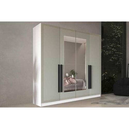 Material do Calceiro - Calceiro Metálico Material dos Cabideiros - Cabideira Metálico Tipo de Porta do Guarda-Roupa - Portas de Bater Material das Portas - Portas em MDF/MDP Diferenciais das Portas - Porta c/ Espelho Quantidade de Portas - 4 Portas de Abrir Quantidade de Portas com Espelho - 2 Portas com Espelho Tipo de Espelho - Espelho Externo Quantidade de Espelhos - 2 Espelhos Material das Gavetas - Gavetas em MDP Tipo de Corrediça - c/ Corrediças Telescópicas Quantidade de Gavetas - 4 Gavetas Tipo dos Pés - ABS/PVC Quantidade de Prateleiras - 6