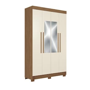 O guarda-roupa de 4 portas com espelho Homero da Estilo MM e um movel muito pratico e funcional, tendo um grande espaco para acomodar todos os pertences da familia. Suas 04 amplas portas acomodam as roupas dobradas em suas prateleiras e/ou penduradas em seus cabideiros em aluminio. Internamente, ele possui 2 amplas gavetas com corredicas telescopicas. Os puxadores sao em MDF revestidos, trazendo beleza e durabilidade ao guarda-roupa. O acabamento e em pintura fosca. O movel ja vem acompanhado de pes. Este produto e fabricado de acordo com as normas e processos sustentaveis, dentro dos padroes de preservacao do meio ambiente.