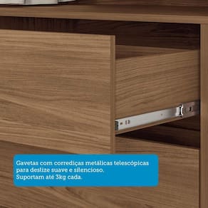 Suporte ate: 8kg na prateleira e 3kg por gaveta.
