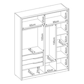 Peso máximo suportado: 4kg cada prateleira e gavetas