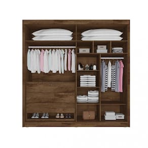 O Roupeiro Nantes une comodidade, espaço e beleza em um só produto. Produzido em MDF, possui 4 portas de bater e 3 gavetas com corrediças telescópicas e uma linda e pratica sapateira com corrediça telescópica; costas parafusadas que aumenta a resistência do móvel. Este produto conta ainda com prateleiras espaçosas e colmeia e puxadores em madeira.